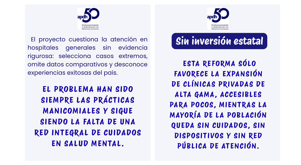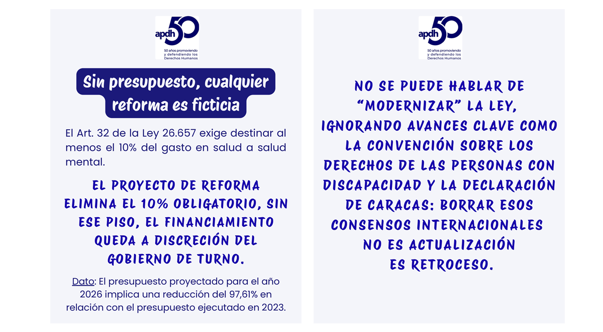 No a la reforma de la Ley Nacional de Salud Mental n掳 26657 14/04/2026 APDH Nacional 馃摙 No es la ley, es聽falta de Estado