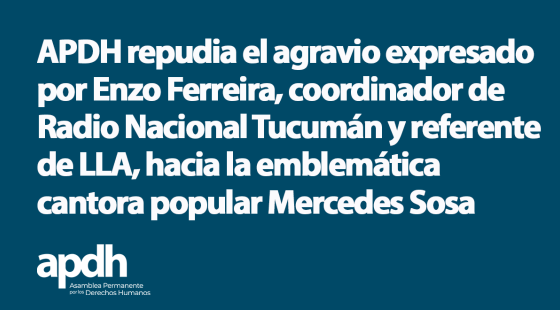 APDH repudia enérgicamente el reciente agravio expresado por Enzo Ferreira, coordinador de Radio Nacional Tucumán y referente del espacio político La Libertad Avanza, hacia la emblemática cantora popular Mercedes Sosa
